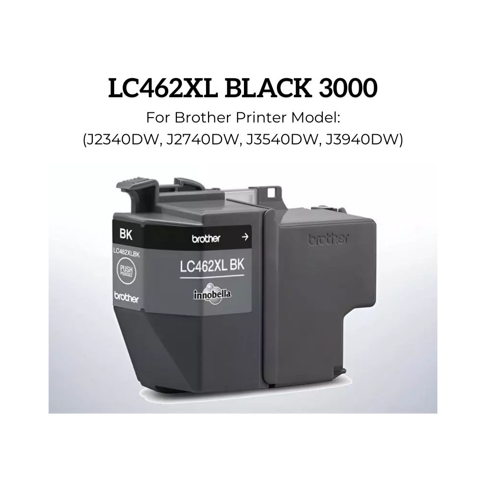 The Brother LC462XL Black ink cartridge is an original high-capacity cartridge designed for consistent, sharp black text output. Compatible with selected Brother inkjet printer models, it offers extended page yield for office efficiency. Consumable item; manufacturer warranty does not apply.